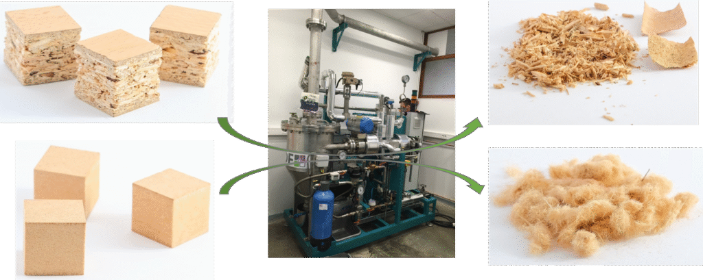 Les molécules et bioplolymères issus des prétraitements à basse température peuvent ensuite être valorisés directement pour fabriquer de nouveaux matériaux (panneaux sans colle, mycocomposites) ou utilisés pour stabiliser des émulsions (nanolignines), produire des ignifugeants, des charges anti-UV, des plastiques biosourcés, …